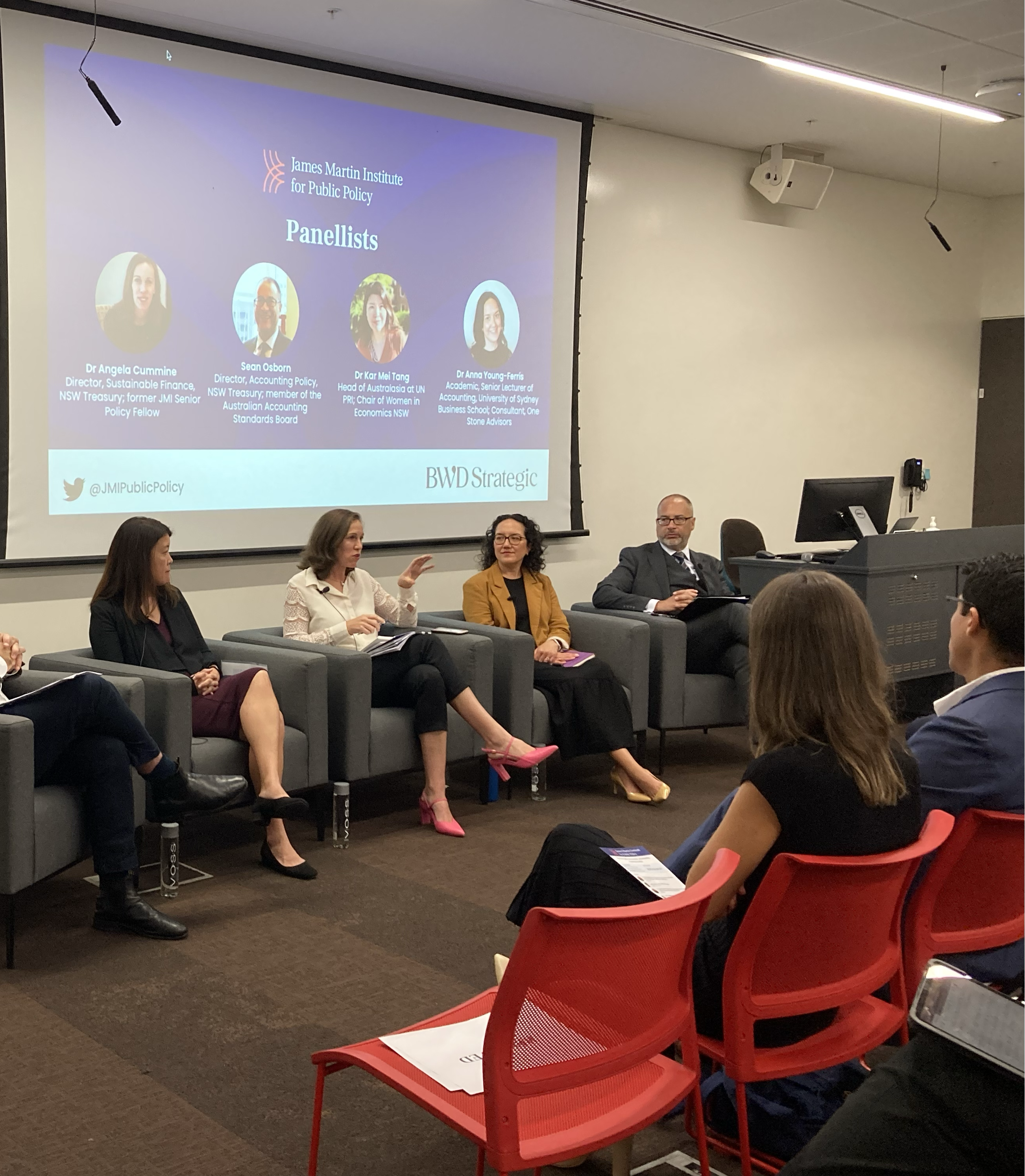 APPI’s inaugural Senior Policy Fellow, Dr Angela Cummine (then Director, Sustainable Finance, NSW Treasury), undertook her fellowship in mid-2022, producing pioneering insights into how governments, and the NSW Government in particular, should pursue sustainability reporting. Sovereign Sustainability Reporting–New South Wales and beyond was published in January 2023 and launched at a public launch event in April with an interactive panel at the University of Sydney. Panellists included policymakers, academics, and leading industry experts, and the discussion involved a wide range of stakeholders working on sustainability issues.